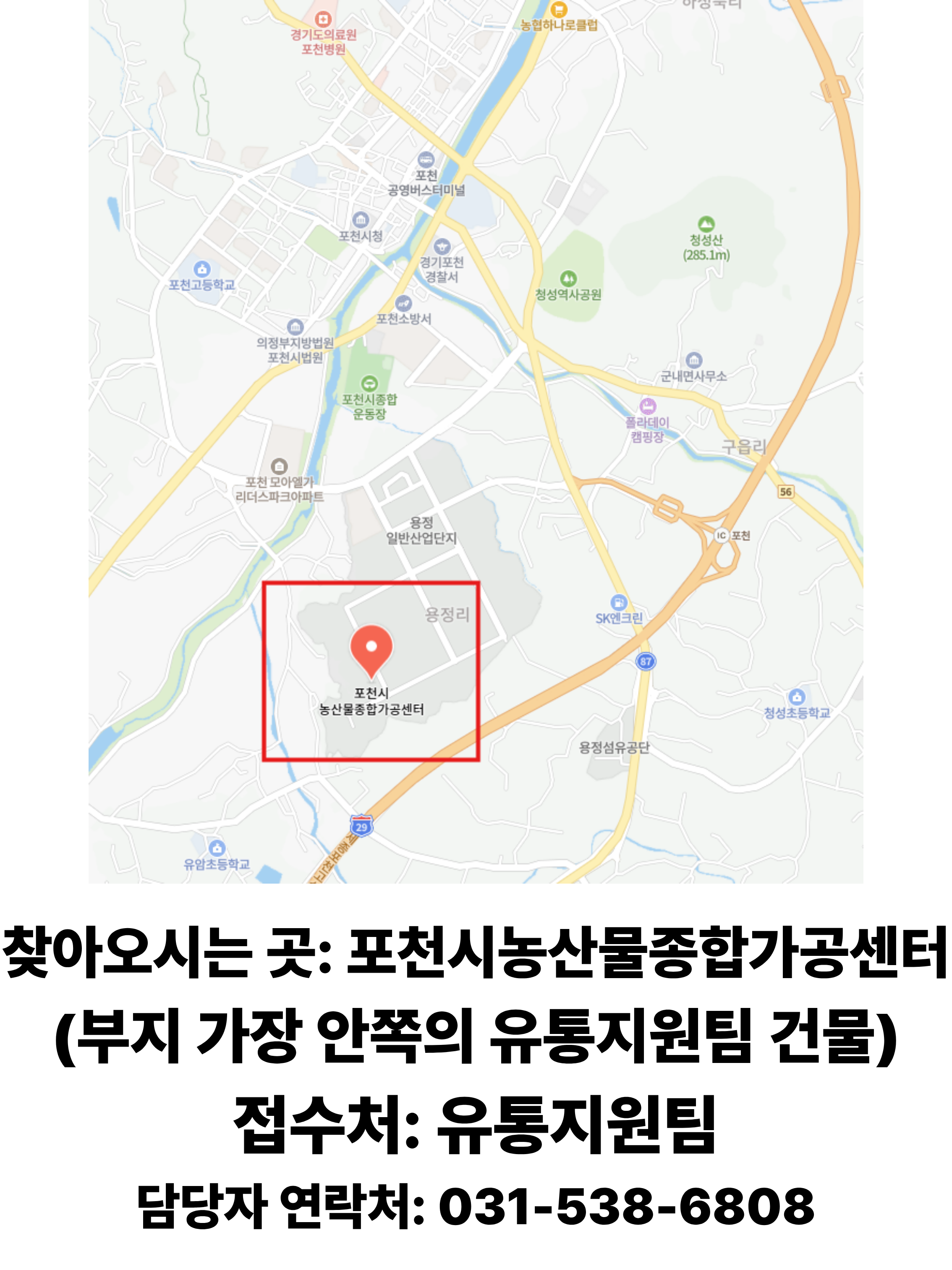 포천시 먹거리통합지원센터 전처리 시설 이용 수요조사 안내문