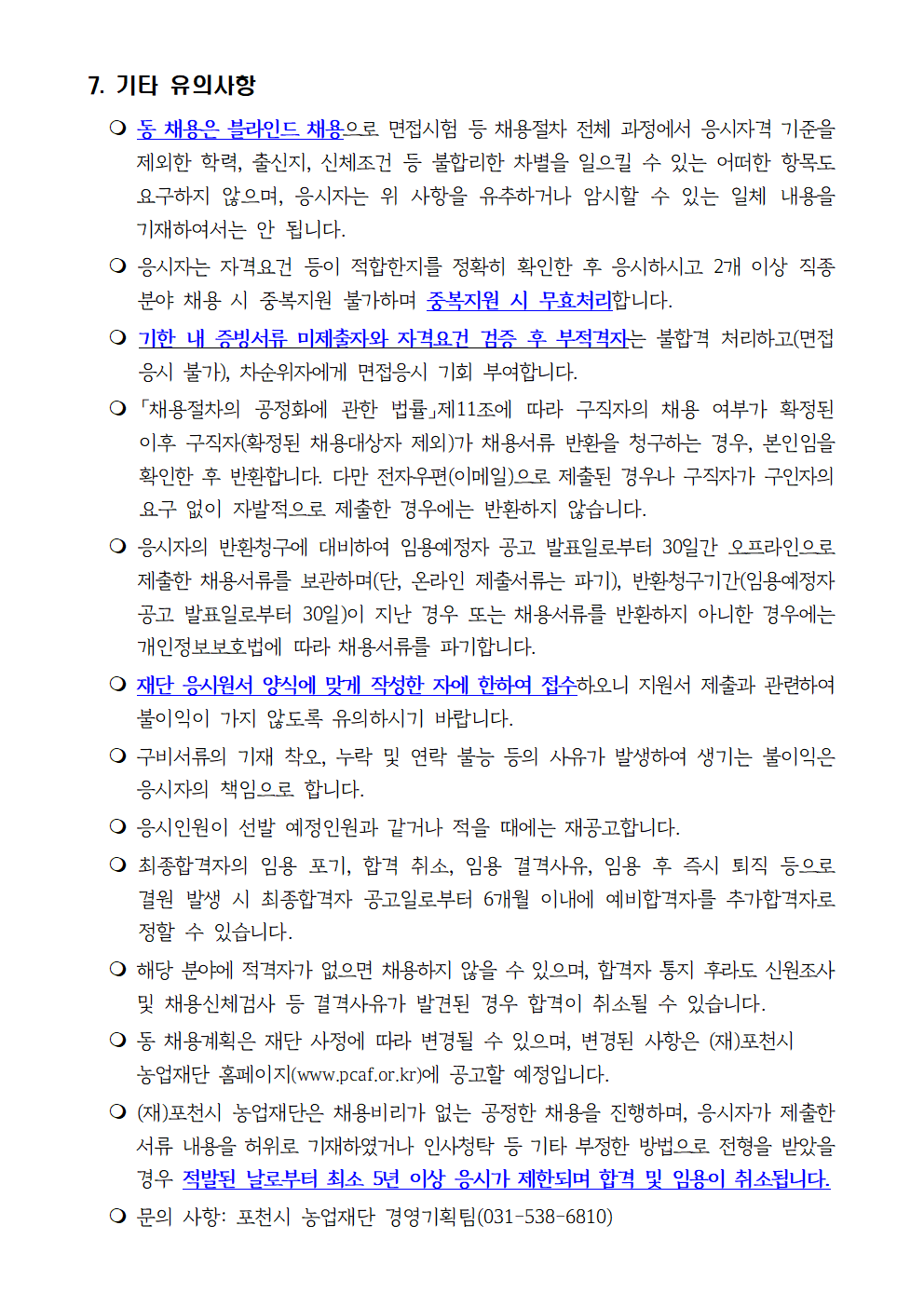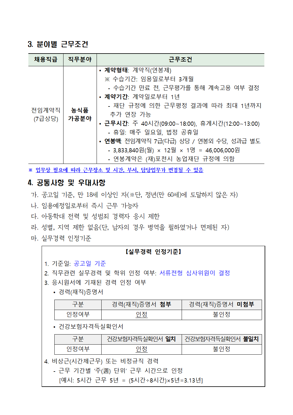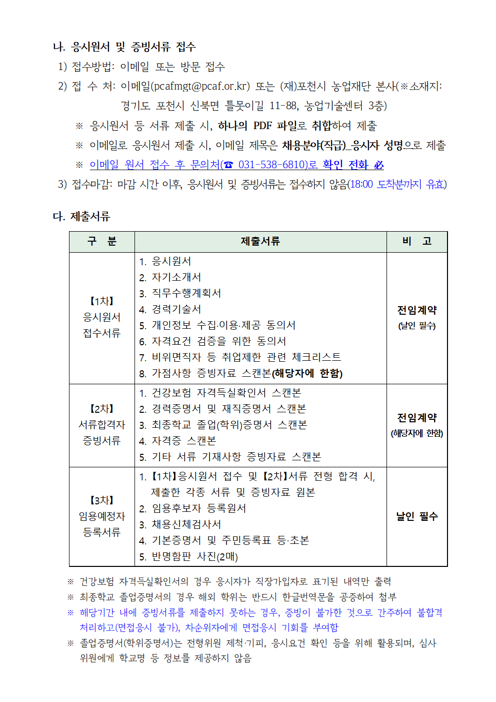 2025년 (재)포천시 농업재단 제4차 전임계약직 채용 공고(일정 변경)