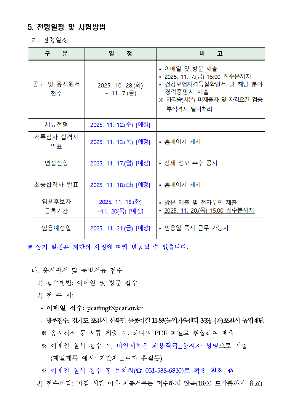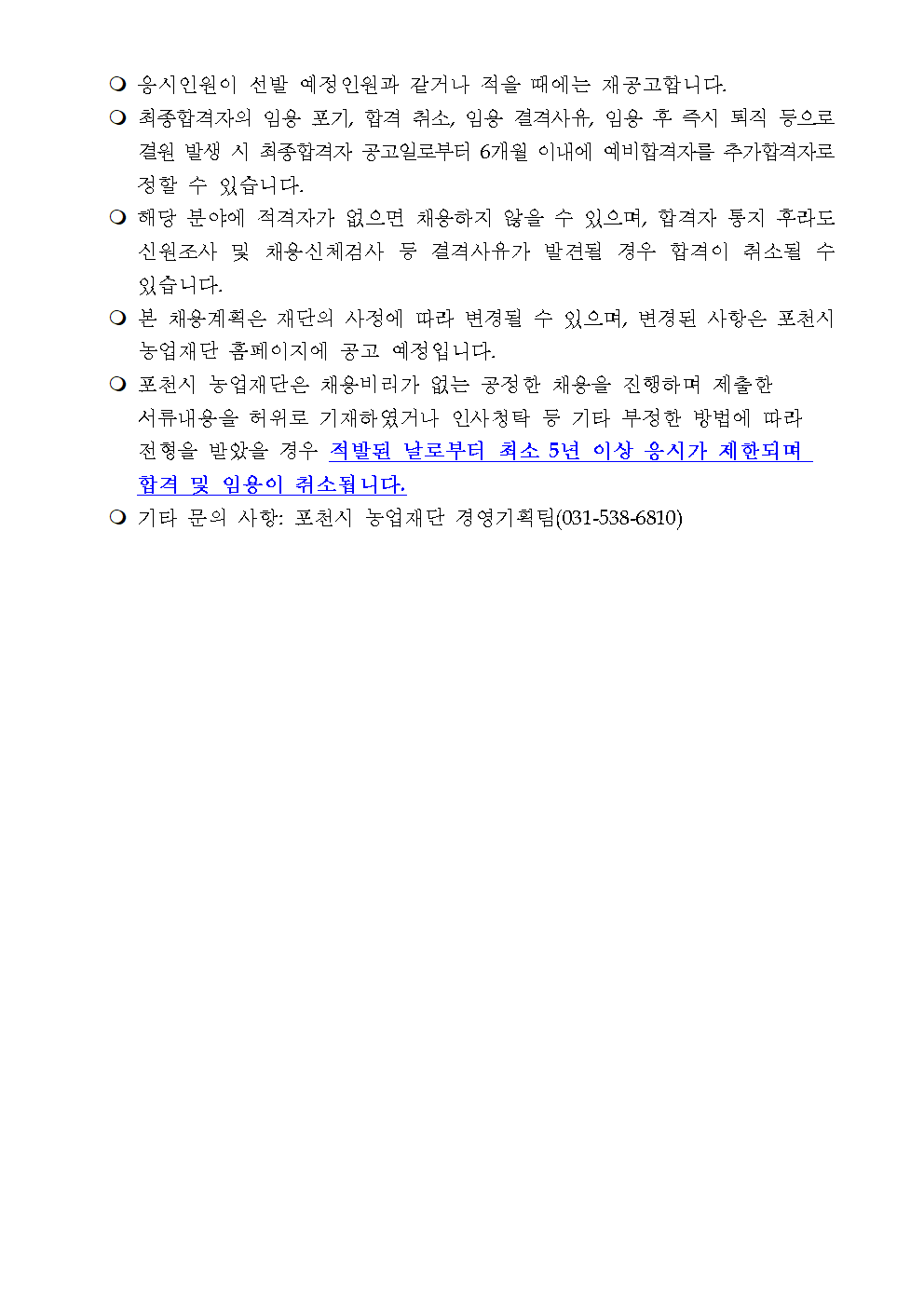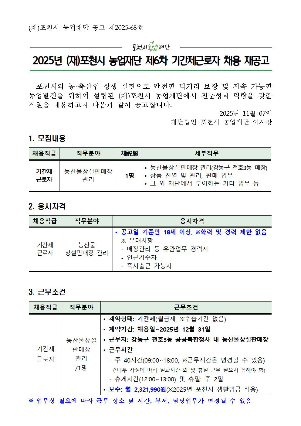 2025년 (재)포천시 농업재단 제6차 기간제근로자 채용 재공고(일정 변경)