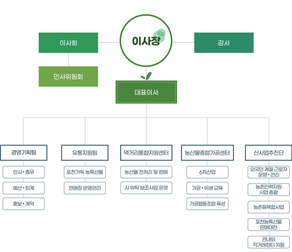 | 대표이사 | 포천시 농업재단 총괄 | 031-538-6800 |