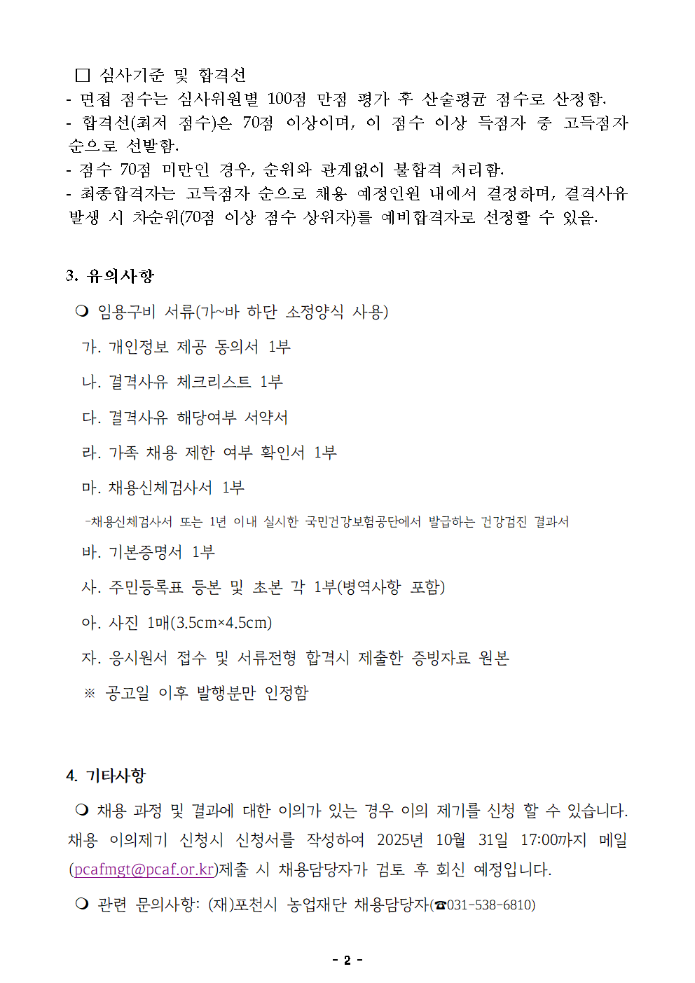 2025년 (재)포천시 농업재단 제6차 기간제근로자 채용 최종합격자 발표 공고