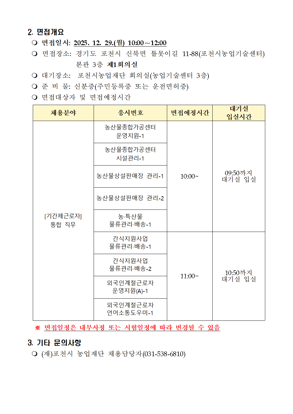2026년 (재)포천시 농업재단 제1차 기간제근로자 채용 서류심사 합격자 공고